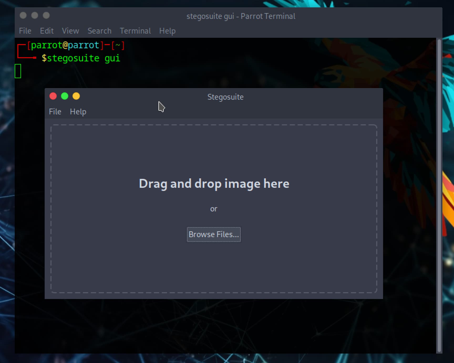 Stegosuite usually comes built into Kali but if like me you’re using Parrot OS or another Debian-based OS it can be installed by running: