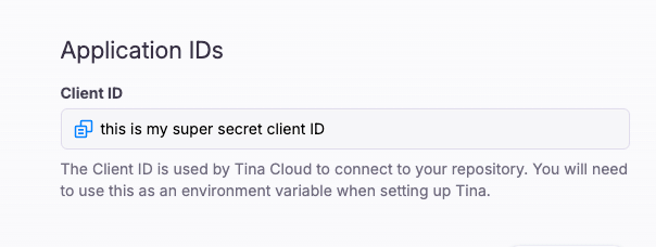 At this point, we need to configure Tina for use. Register for Tina Cloud at tina.io and create a new custom project by authenticating with Github and selecting your repo. Now grab your client ID and Content (Read Only) tokens and save them as environment variables in your project. Inside tina/config.ts set clientID and token.