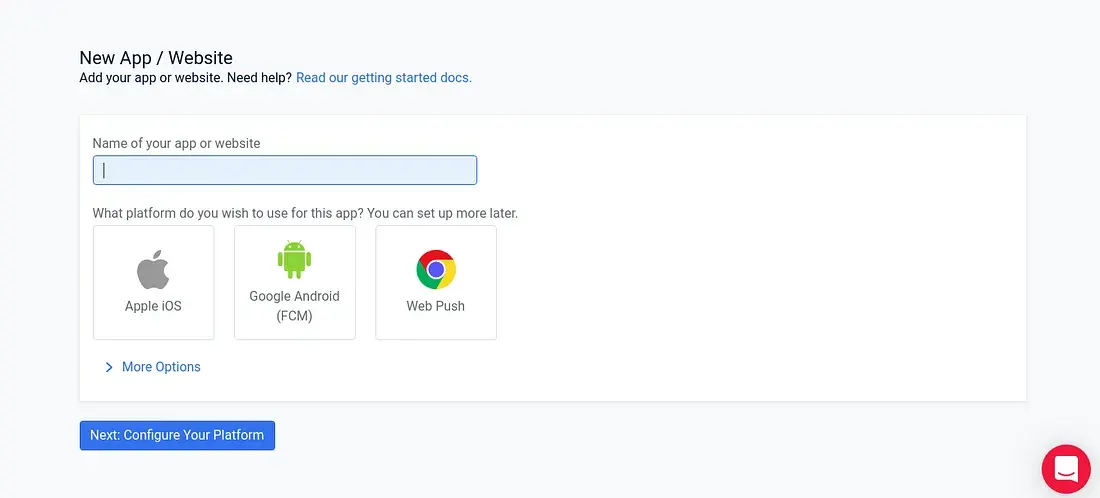Name your app, select Web Push and click Next.